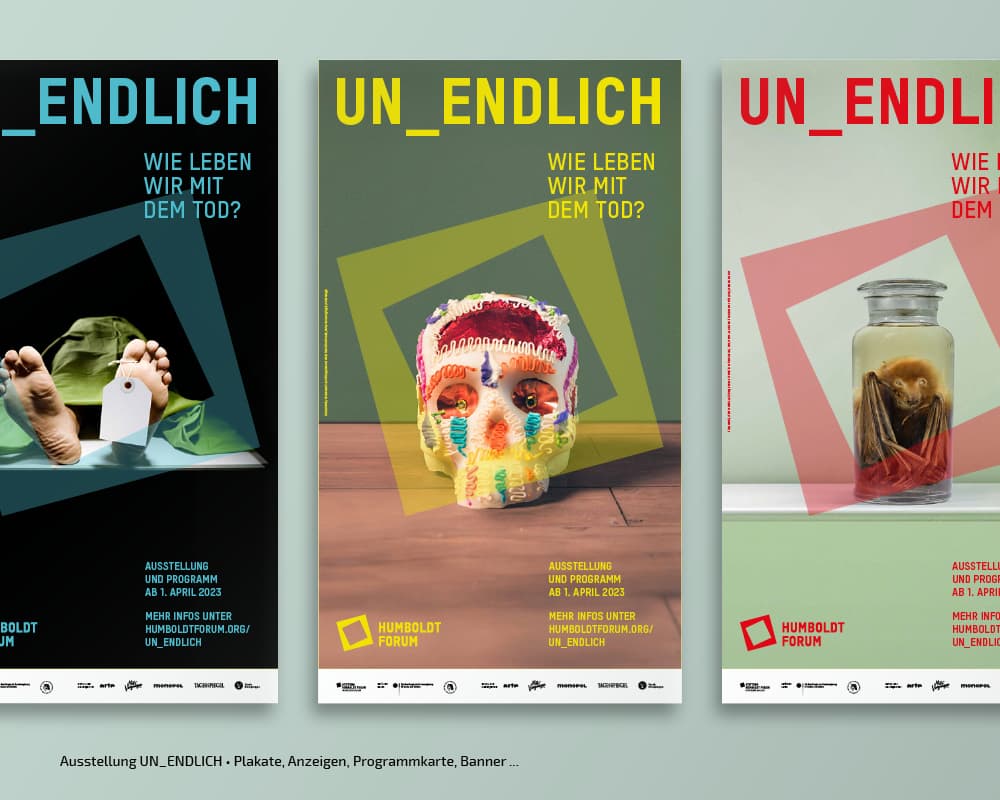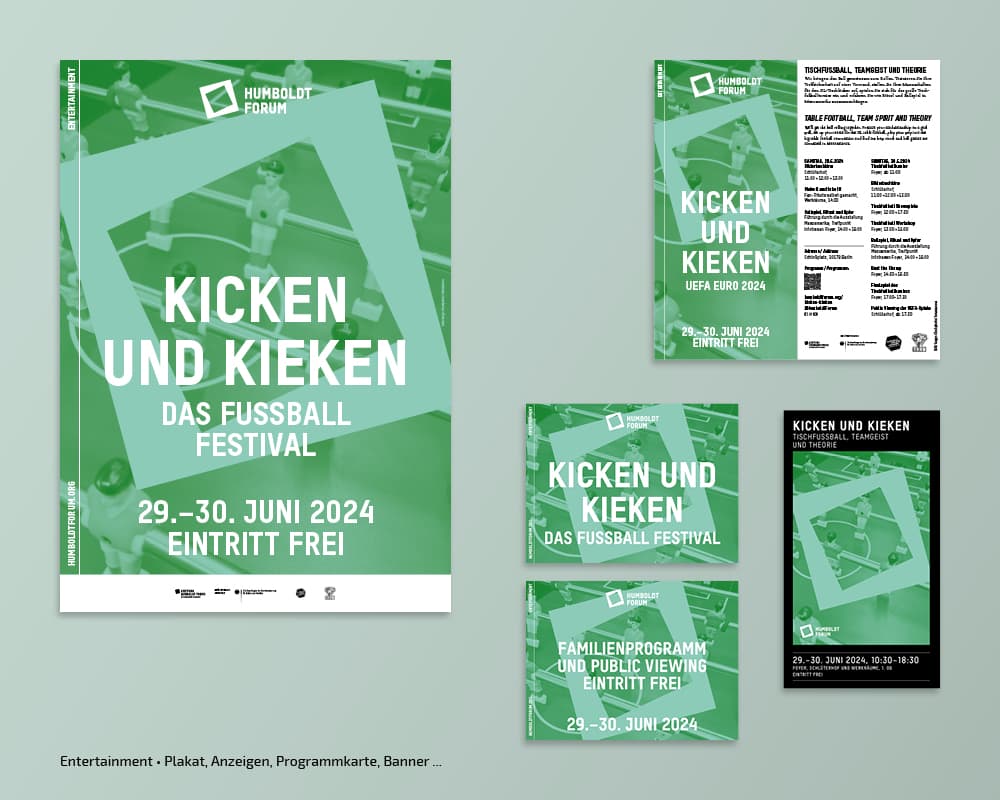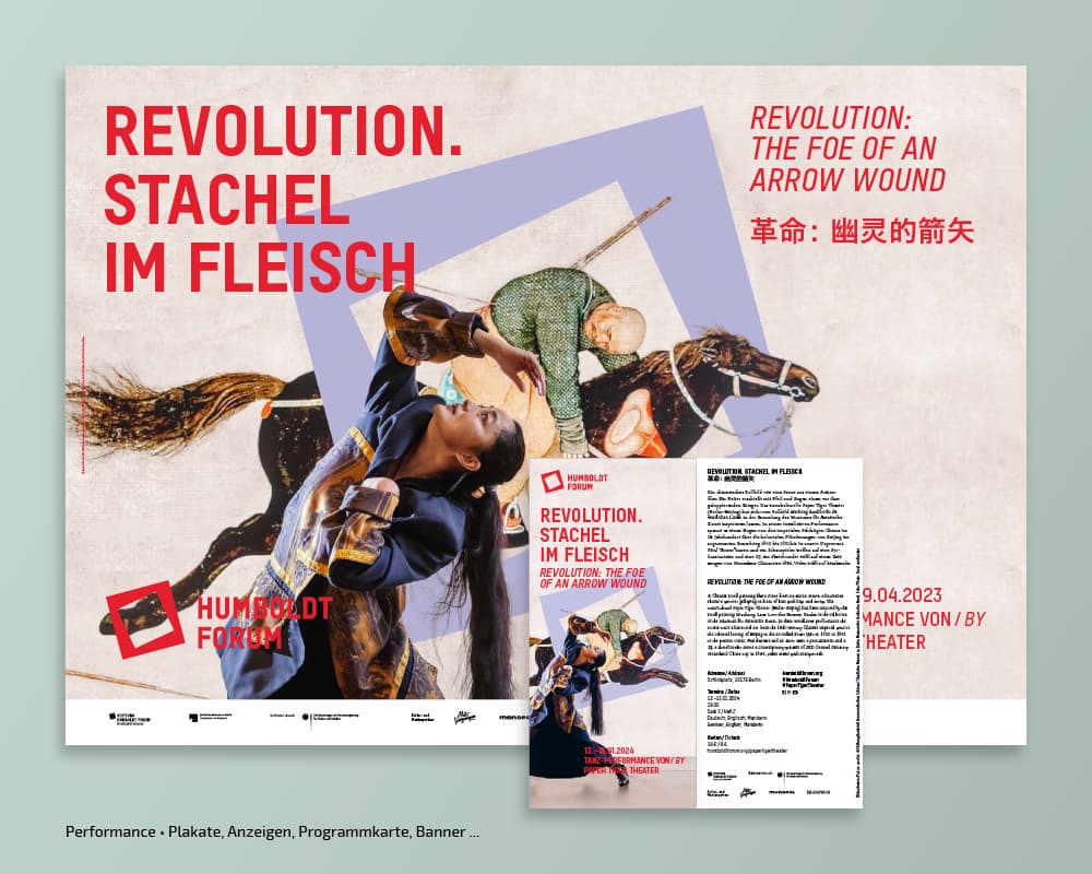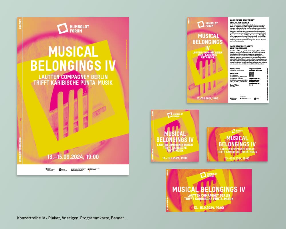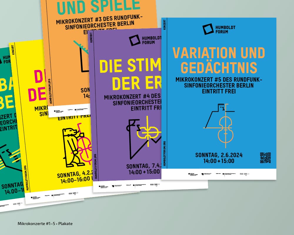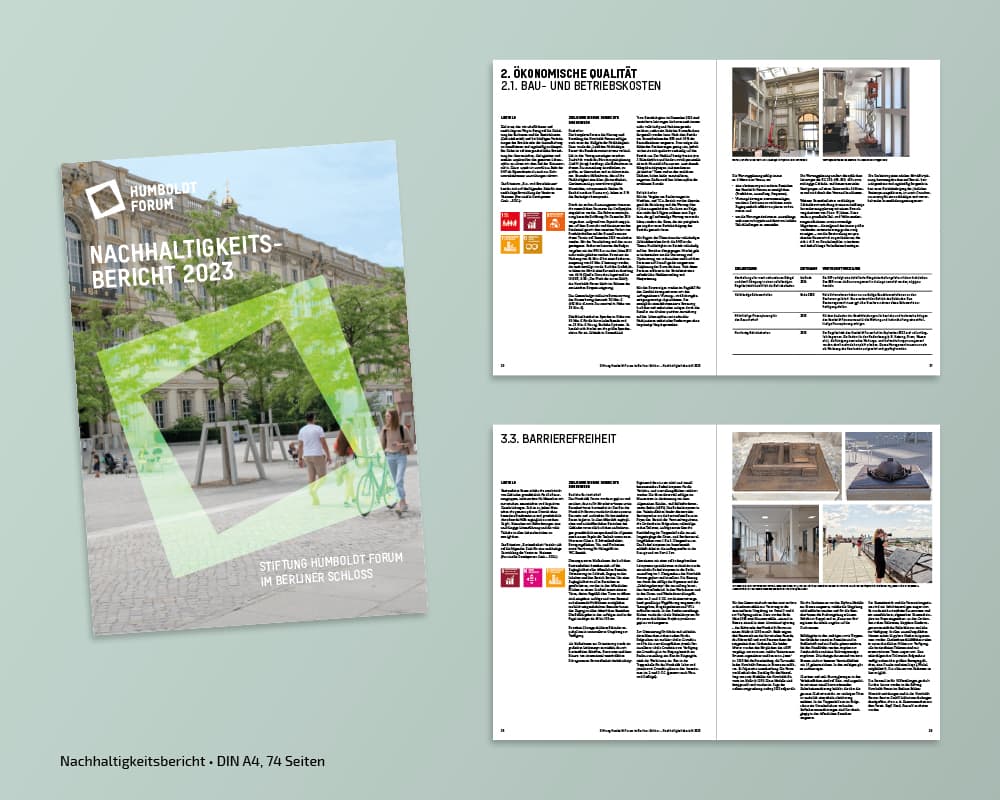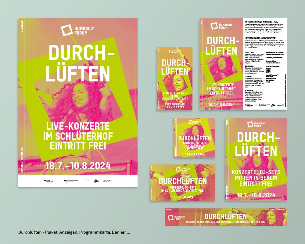 Seit der Eröfnung 2021 erstellt und adaptiert tsd zu diversen Kampagnen der Stiftung Humboldt Forum im Berliner Schloss Plakate, Broschüren, Anzeigen, Flyer, Banner, Programmzettel … Auch die Umsetzung verschiedener Keyvisuals, Nachhaltigkeitsberichte, Pressedossiers oder die Gestaltung von Icons gehören zum Aufgabengebiet.