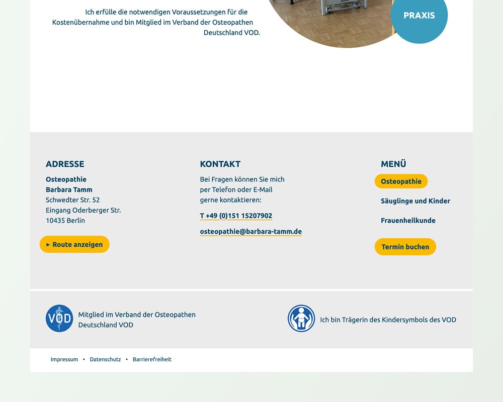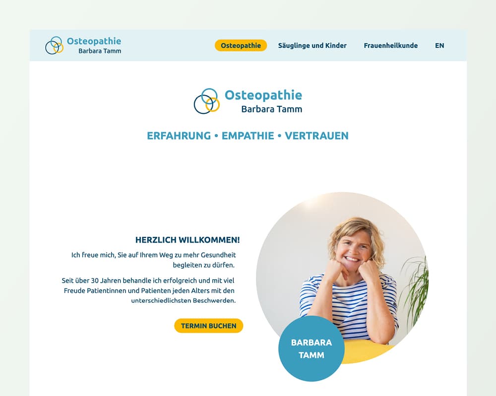 Osteopathie Barbara Tamm begleitet die Menschen auf dem Weg zu mehr Gesundheit – tsd begleitet Barbara Tamm auf dem Weg zu einem neuem Corporate Design samt Geschäftsausstattung und barrierearmer Website. Eine rundum erfolgreiche Geschichte.